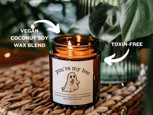 ‘Eres mi boo’ ('You're my boo') lindas velas con especias de calabaza para regalo o decoración en Halloween